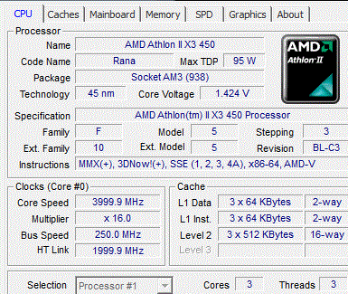| Процессор (ядро) | AMD Athlon II X3 (Rana) |