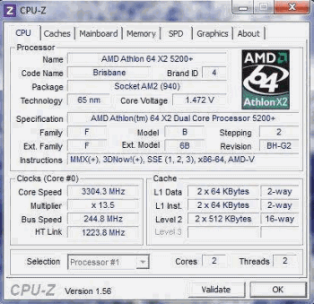Результат разгона AMD Athlon 64 X2 (Brisbane)