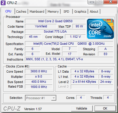 Результат разгона Intel Core 2 Quad (Yorkfield)