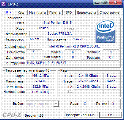 Результат разгона Intel Pentium D (Presler)