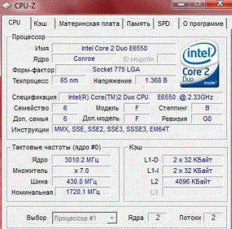 | Процессор (ядро) | Intel Core 2 Duo (Conroe) |