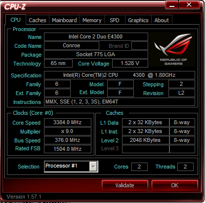 | Разгон, максимально стабильная частота (FSB x Ratio) | 3384 (376 x 9.0) |