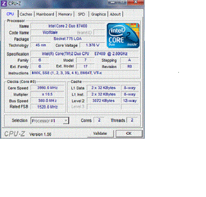 Результат разгона Intel Core 2 Duo (Wolfdale)