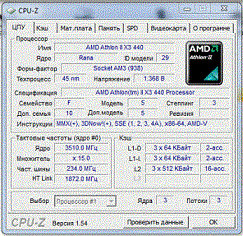 | Процессор (ядро) | AMD Athlon II X3 (Rana) |