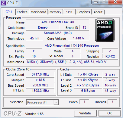 | Процессор (ядро) | AMD Phenom II X4 (Deneb) |
