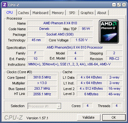 Результат разгона AMD Phenom II X4 (Deneb)