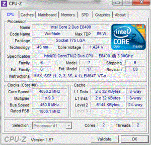 Результат разгона Intel Core 2 Duo (Wolfdale)