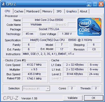 Результат разгона Intel Core 2 Duo (Wolfdale)