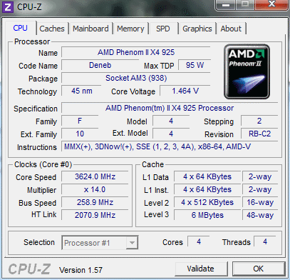 | Процессор (ядро) | AMD Phenom II X4 (Deneb) |