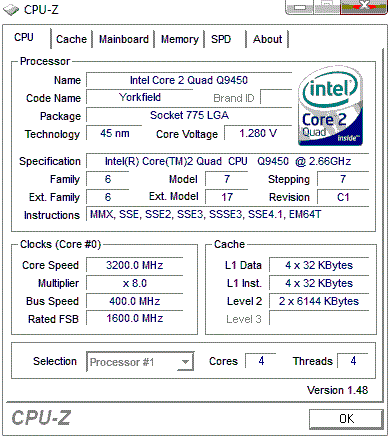 Результат разгона Intel Core 2 Quad (Yorkfield)
