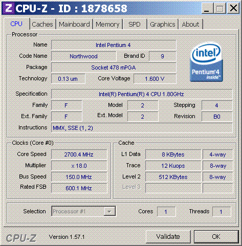 | Процессор (ядро) | Intel Pentium 4 (Northwood) |