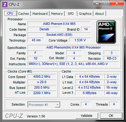 Результат разгона AMD Phenom II X4 (Deneb)