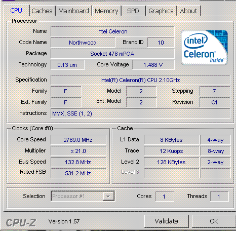 Результат разгона Intel Celeron (Northwood-128)