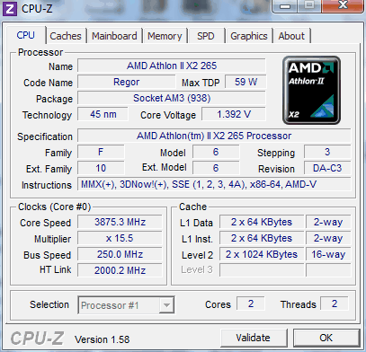 Результат разгона AMD Athlon II X2 (Regor)