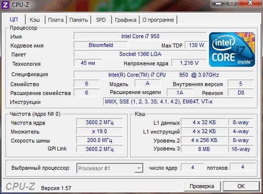 | Процессор (ядро) | Intel Core i7 (Bloomfield) |