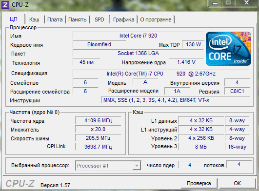 | Процессор (ядро) | Intel Core i7 (Bloomfield) |
