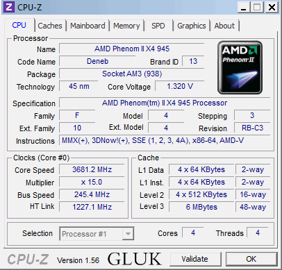 Результат разгона AMD Phenom II X4 (Deneb)