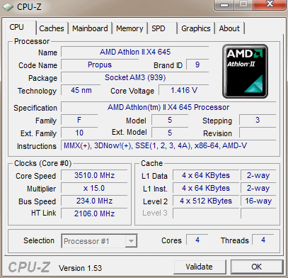 | Процессор (ядро) | AMD Athlon II X4 (Propus) |
