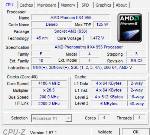 | Процессор (ядро) | AMD Phenom II X4 (Deneb) |