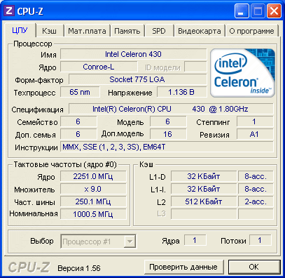 Результат разгона Intel Celeron (Conroe-L)