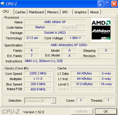 | Процессор (ядро) | AMD Athlon XP (Barton) |