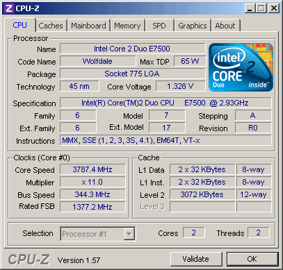 Результат разгона Intel Core 2 Duo (Wolfdale)
