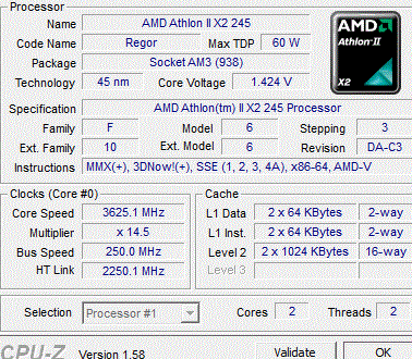 Результат разгона AMD Athlon II X2 (Regor)