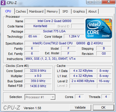 Результат разгона Intel Core 2 Quad (Kentsfield)