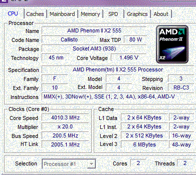 | Процессор (ядро) | AMD Phenom II X2 (Callisto) |