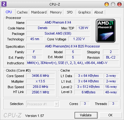 | Процессор (ядро) | AMD Phenom II X3 (Heka) |