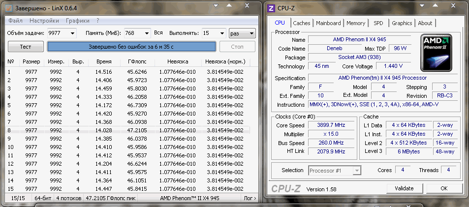 | Процессор (ядро) | AMD Phenom II X4 (Deneb) |