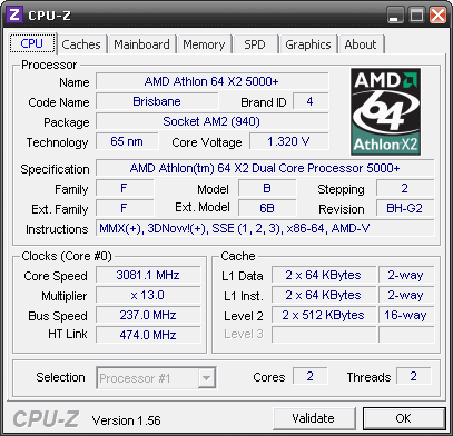 Результат разгона AMD Athlon X2 (Brisbane)