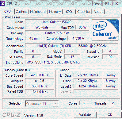 | Разгон, максимально стабильная частота (FSB x Ratio) | 4200 (336 x 12.5) |