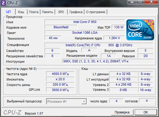 | Процессор (ядро) | Intel Core i7 (Bloomfield) |