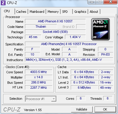 | Процессор (ядро) | AMD Phenom II X6 (Thuban) |