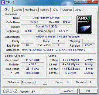 Результат разгона AMD Phenom II X4 (Deneb)