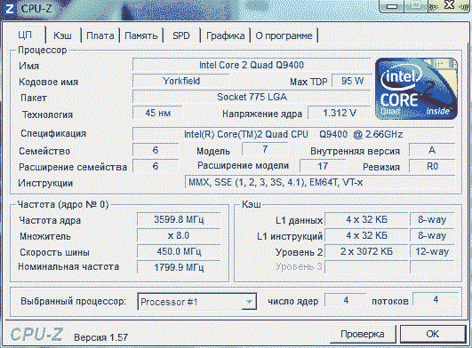 | Процессор (ядро) | Intel Core 2 Quad (Yorkfield) |