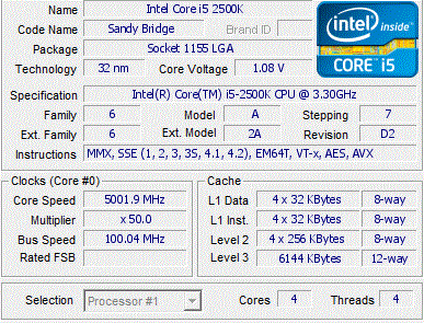 | Маркировка | Intel Core i5 2500k |