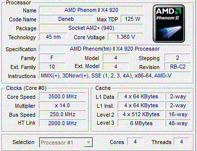 | Процессор (ядро) | AMD Phenom II X4 (Deneb) |