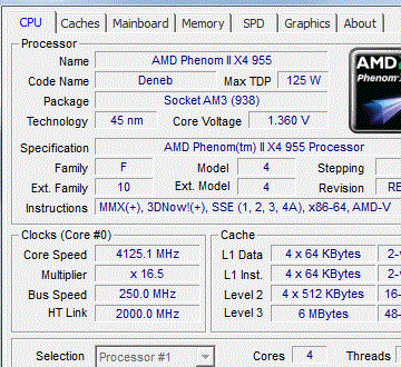| Процессор (ядро) | AMD Phenom II X4 (Deneb) |
