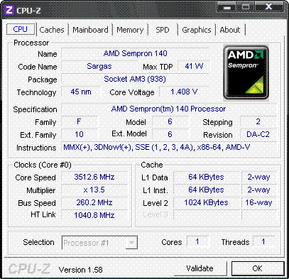 | Процессор (ядро) | AMD Sempron (Sargas) |