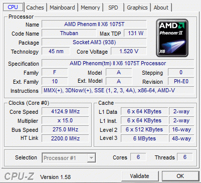 Результат разгона AMD Phenom II X6 (Thuban)