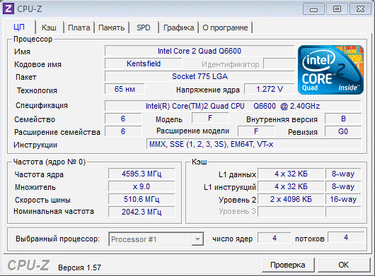 | Процессор (ядро) | Intel Core 2 Quad (Kentsfield) |