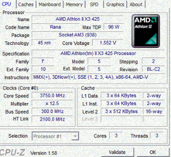 Результат разгона AMD Athlon II X3 (Rana)