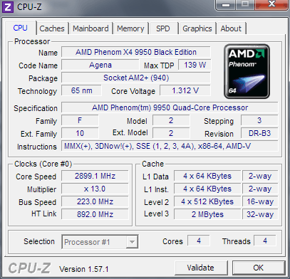 | Процессор (ядро) | AMD Phenom X4 (Agena) |