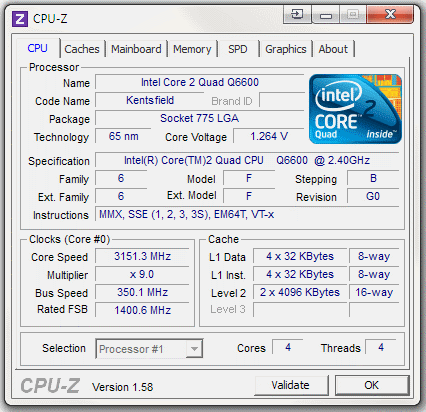 | Процессор (ядро) | Intel Core 2 Quad (Kentsfield) |