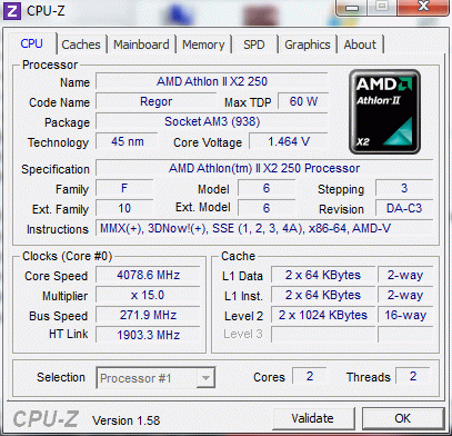 Результат разгона AMD Athlon II X2 (Regor)