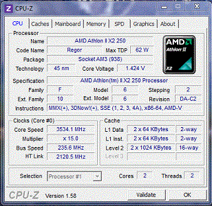 Результат разгона AMD Athlon II X2 (Regor)