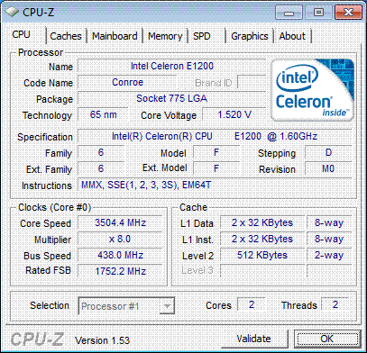 Результат разгона Intel Celeron (Conroe-512)