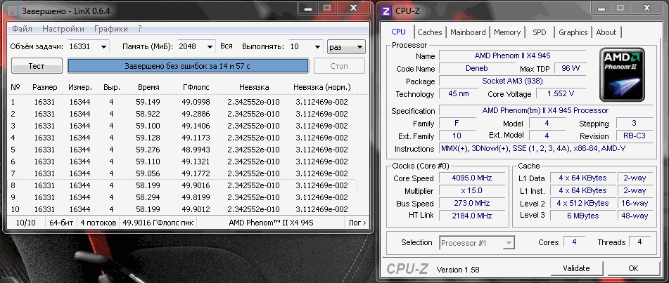 | Процессор (ядро) | AMD Phenom II X4 (Deneb) |